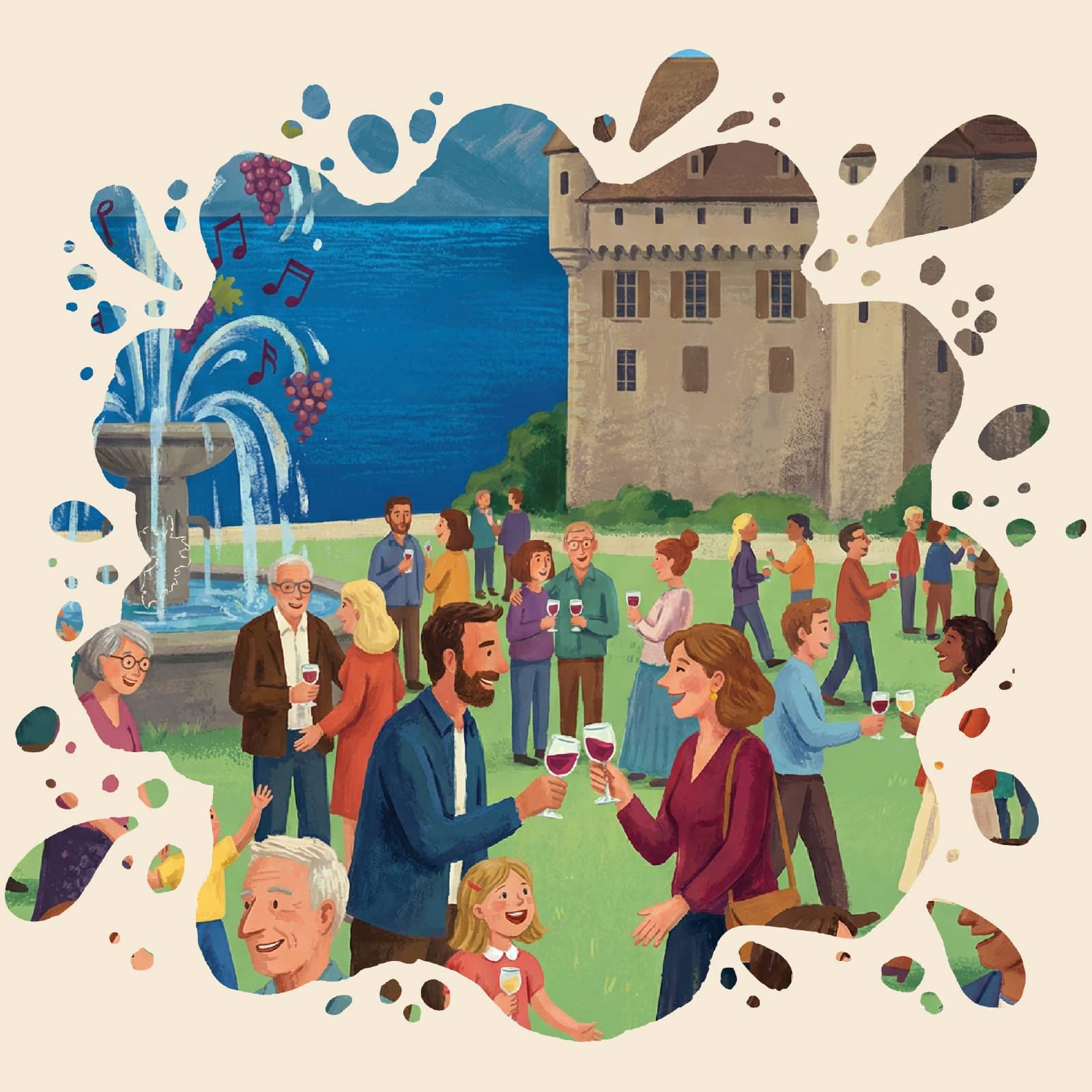 Achetez votre verre de vin personnalisé "Les Fontaines Gourmandes" pour garder un joli souvenir de votre balade gourmande !